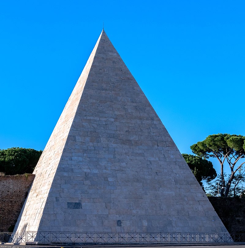 Die Cestius-Pyramide in Rom -- das pyramidenförmige Grabmal des römischen Prätors Gaius Cestius -- hat GO Grundfläche mO Masse und wurde aus Travertin rO erbaut. Wie hoch ist die Pyramide?